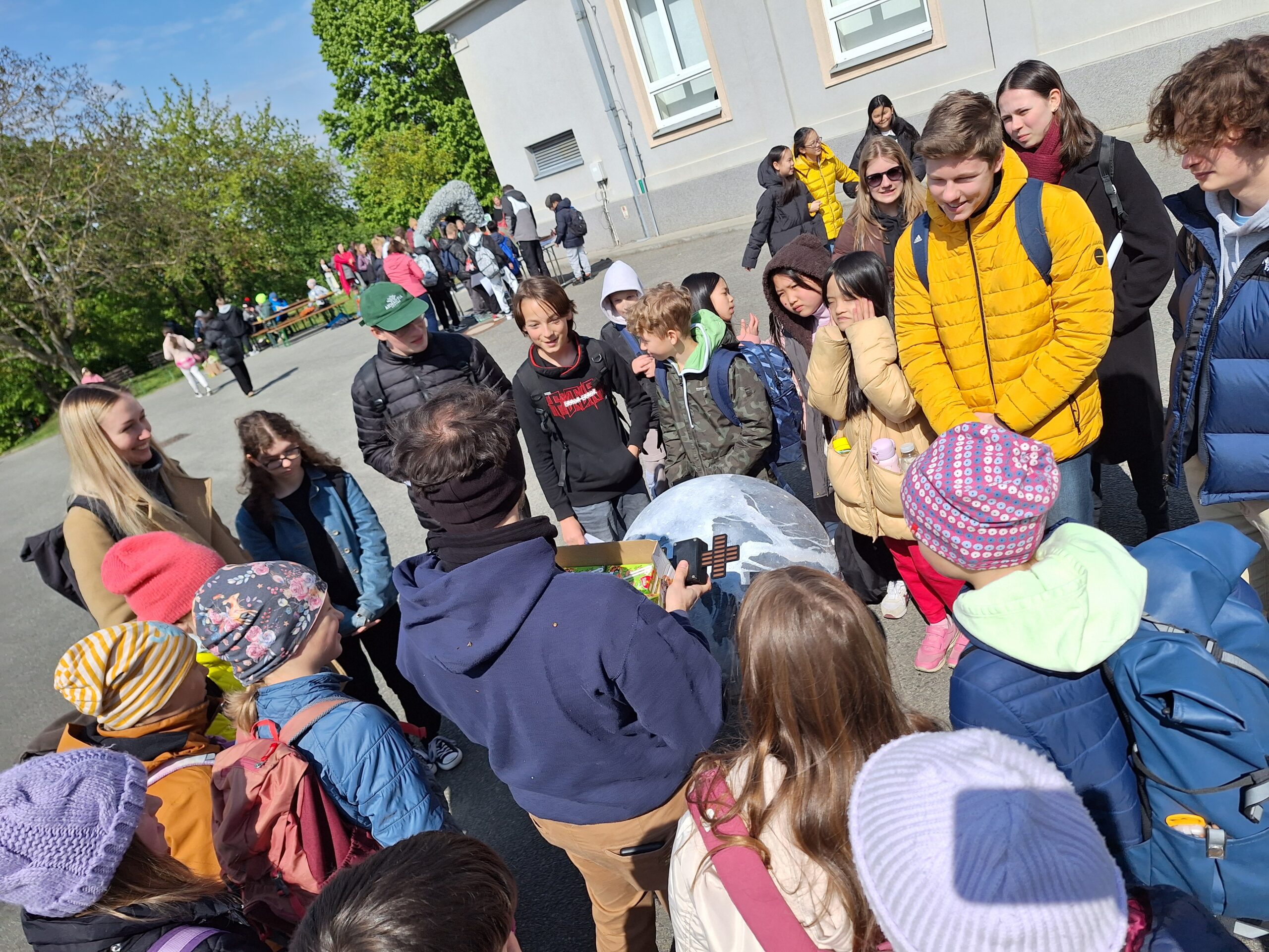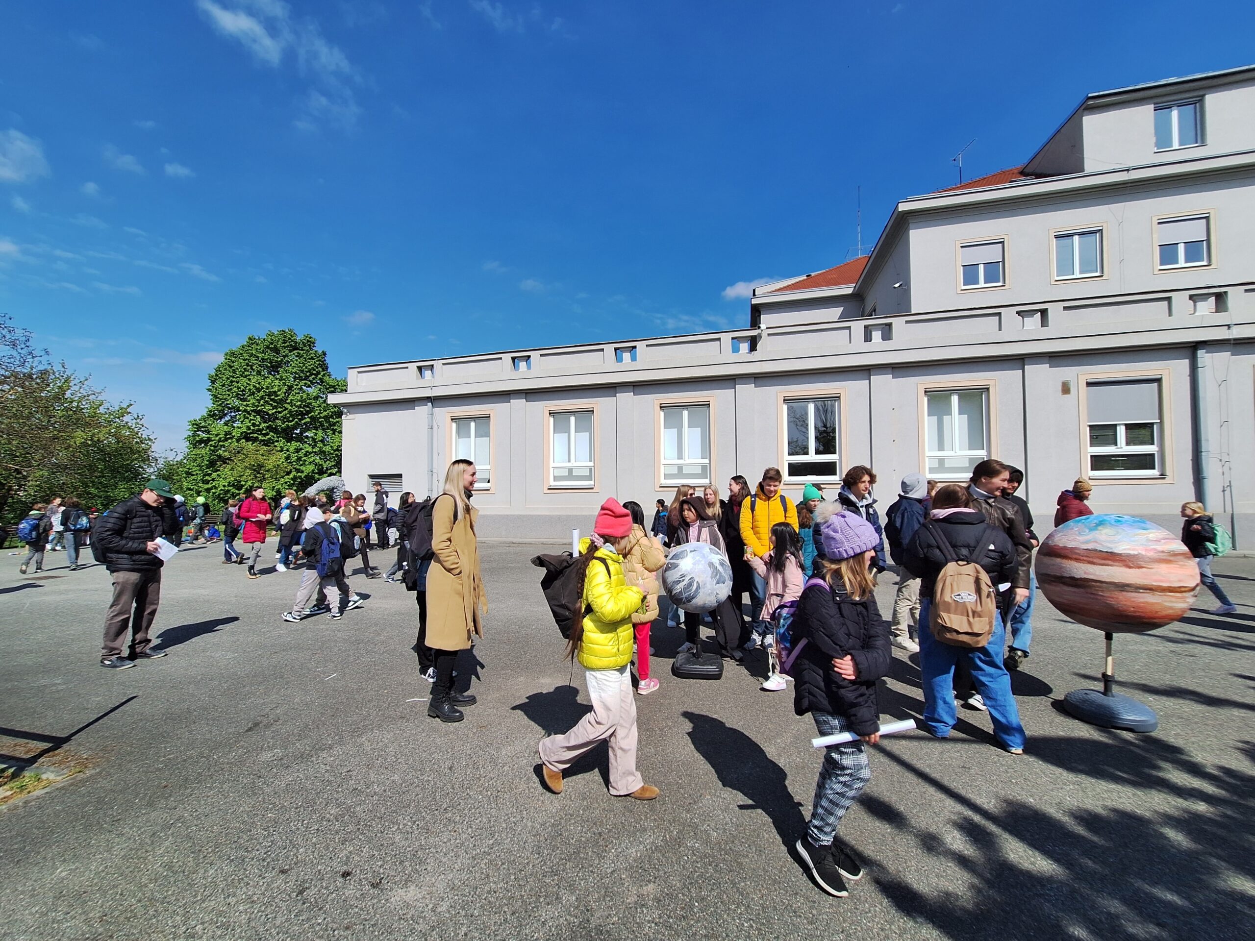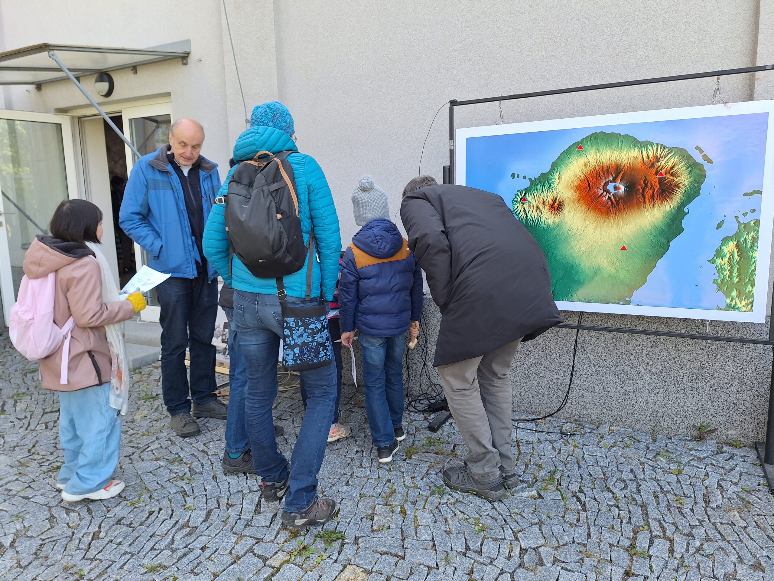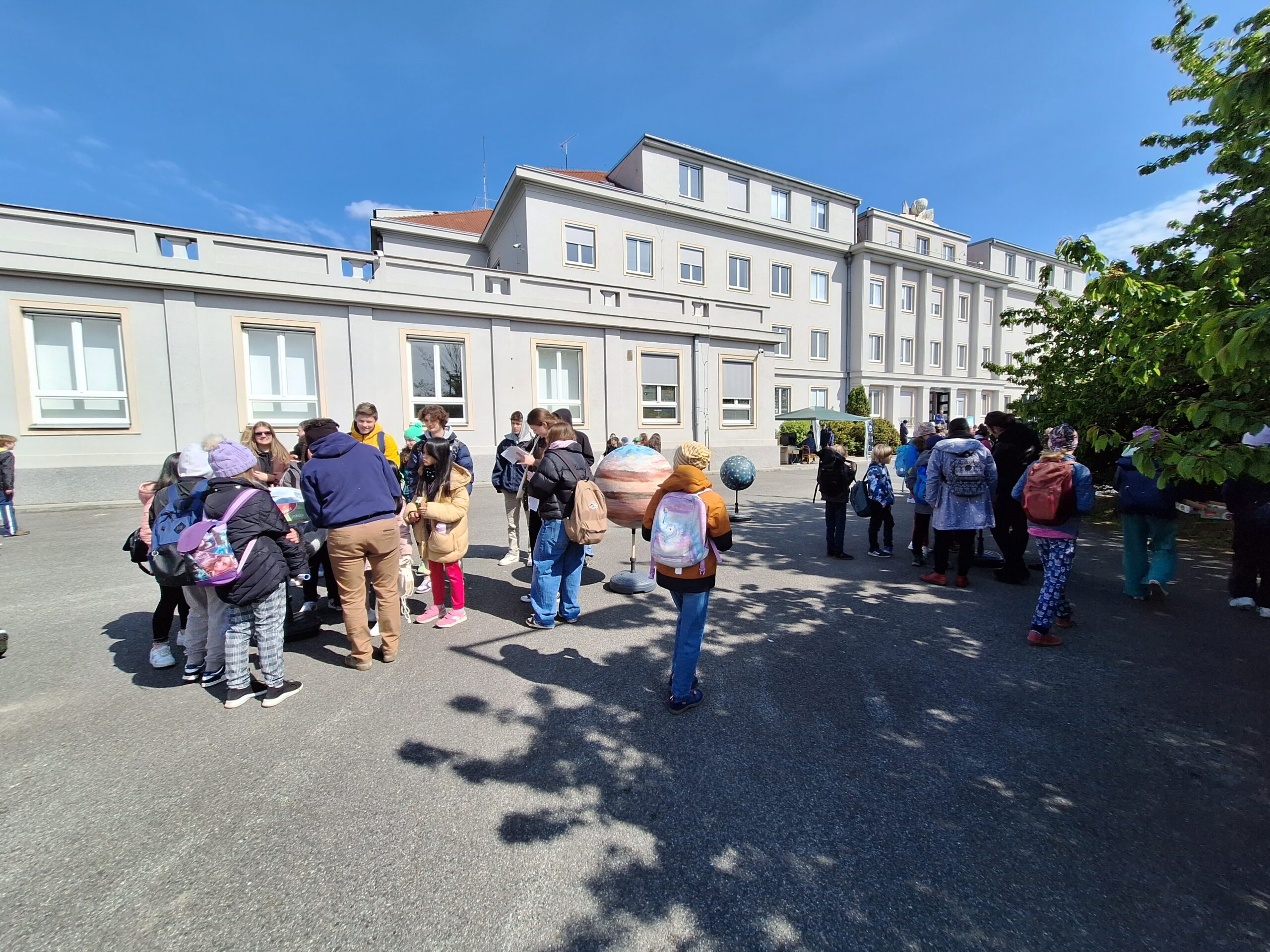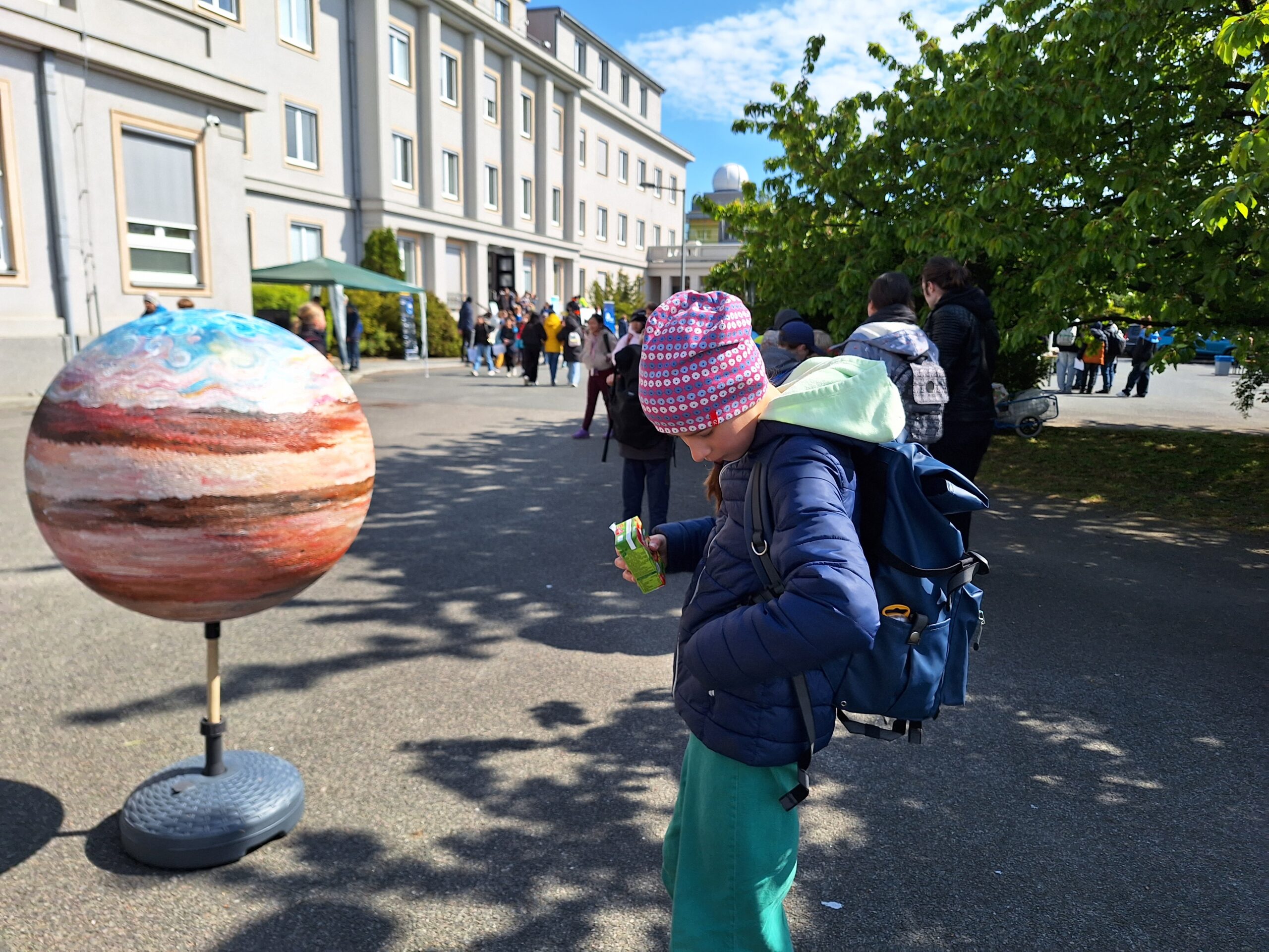 Dopolední program byl cílený především pro školy. Vědci a vědkyně pro návštěvníky připravili více než deset stanovišť, kde se formou ukázek a pokusů mohli dozvědět více o naší planetě (sopečná činnost, zemětřesení, atmosférické vlny, meteorologická měření), Jupiteru a podívat se i na naši nejbližší hvězdu – Slunce.